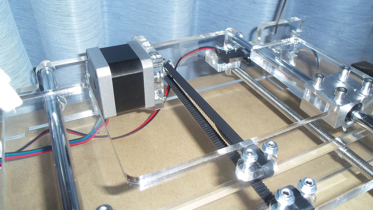 今回はY軸周りの組み立てです。ステッピングモーター、リミットスイッチ、ベルトを装着です。