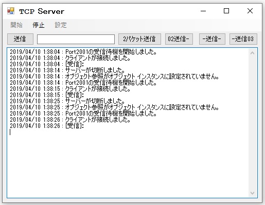 WindowsPC上にViaual Studioで作成したTCPサーバプログラムを接続してLANケーブルを抜いたり、ハブの電源を切ったりしてちゃんと再接続するか試してみました。Arduino+WIZ550ioシールドで作成したTCPサーバにも接続してみたりもしました。この範囲ではちゃんと動いてました。もっと厳しいLANの切断テストが必要なのかもしれない。