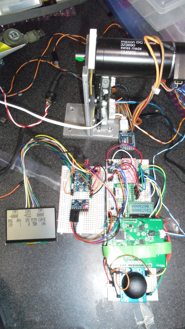 モータードライバのパルスカウンタ値、ジョイスティック値を表示する。