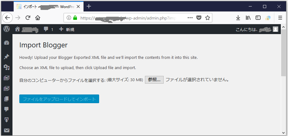 4. その後、「ファイルをアップロードしてインポート」ボタンをクリックする。読み取りが始まります。途中記事投稿者をだれにするかを聞いてきますので自分の判断で決めてください。